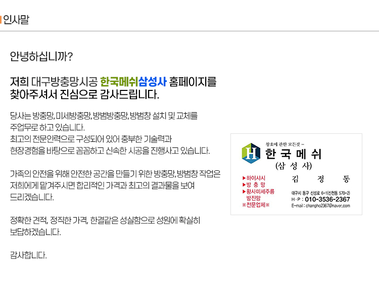: 대구방충망 한국메쉬삼성사 /